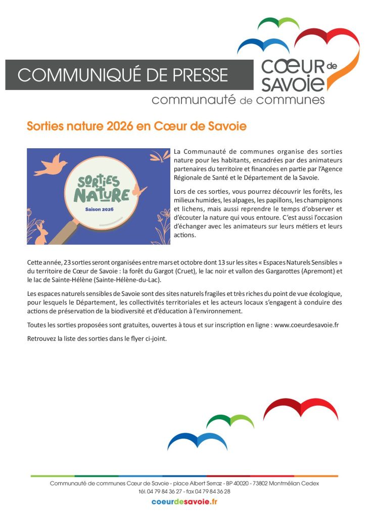 Contact au 04 79 25 53 12 ou par mail j.hugot@coeurdesavoie.fr